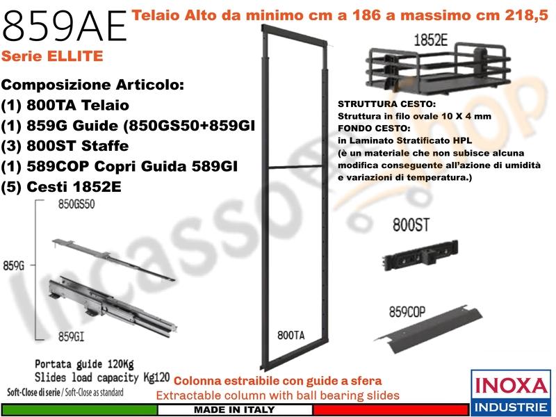 | Composizione | 1 Telaio Meccanismo 800TH + 3 Staffe 800ST + Guide 859G + Copriguida 859COP + 5 CESTI 1852E |
