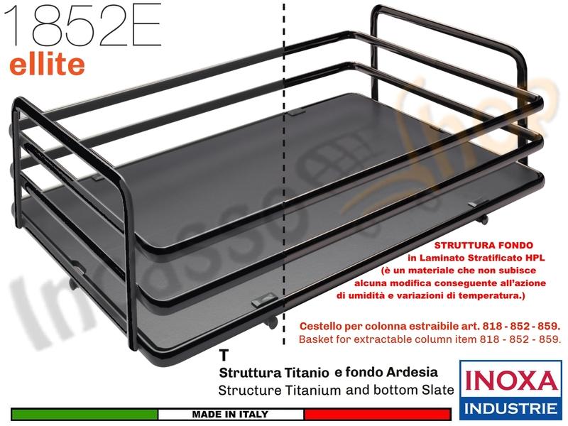 | Taglia | Completo di n. 5 Cestelli 1852E per colonna estraibile art. 818 - 852 - 859 Dimensioni Cesti : per Colonna da 15 - Larghezza 9,5 - Profondità 47 - Altezza 10,8. Struttura in Filo Metallico mm. 10 X 5 Base in Laminato Stratificato HPL (è un materiale che non subisce alcuna modifica conseguente all’azione di umidità e variazioni di temperatura.) |