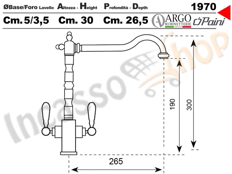 | Dimensione foro su Lavello Cm.: | Ø 3,5 |